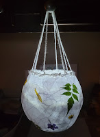 This one is simple, just collect some leaves- preferably fairly fresh leaves, if they're too dry they will crumble. Paint them lightly, vein side up, with washable paints and then stamp them onto paper.